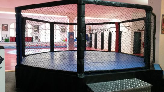 Die Kampfsportschule Baron verfügt über zwei Mattenflächen, einen traditionellen Kung Fu-Raum, einen MMA-Cage, einen Kraft-/ Fitnessbereich, eine Sauna sowie einen großen Thekenbereich.